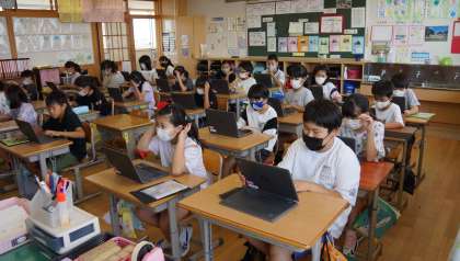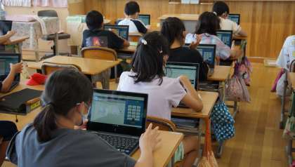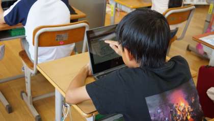 5年1組は、タブレットを使ってドリルパークを行っていました。