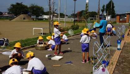 1年2組がシャボン玉遊びを行いました。大きなシャボン玉を作ったり,沢山のシャボン玉を作ったりして楽しんでいました。