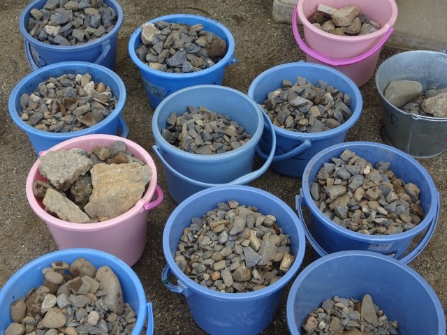 おかげで20分ほどの時間でバケツ満杯で11杯とちょっともの石を集めることができました。みんなで協力すると大きな力になることを改めて感じました。