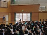ハッピー三ちゃんが登場し、最近気になることとして、ろうかの歩き方や階段の過ごし方をあげ、そのことについての劇を演じていました。その中で、正しい歩き方や過ごし方を児童みんなにインタビューをして、みんなしっかりと答えることができました。