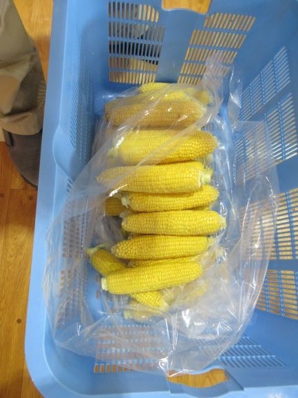 自分たちで皮をむいたとうもろこしを、おいしく食べていました。