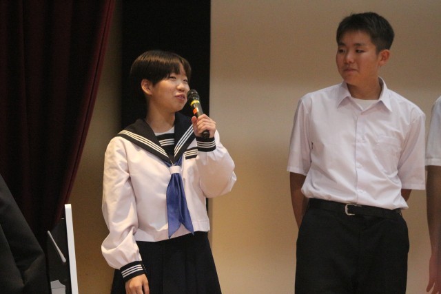 約1ヶ月間、放課後や土日も返上し、英語科の先生やAETとともに練習を重ねて本番に臨んだ5名の生徒たち。