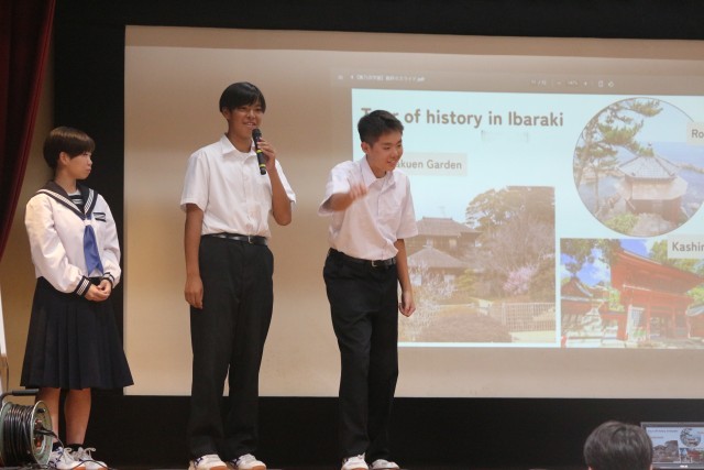 英語で質問されたことに英語で返していくやり取りの場面があったのですが、「偕楽園(茨城の名所)、ああ違った、幸楽苑(飲食店)だったよ」と返せるほどの余裕をもてる安定した英会話で、生徒たちのコミュニケーション能力の高さが光りました。