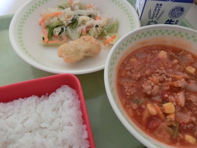 今日は夏休み前の給食最終日でした。しばらく給食ともお別れです。暑く、人手不足のなか、調理員さんたちも子供たちのために頑張って作ってくださいました。感謝の気持ちで食べ納めました。タコライスには「タコ」が入っている?と勘違いされがちですが、タコは入ってません。