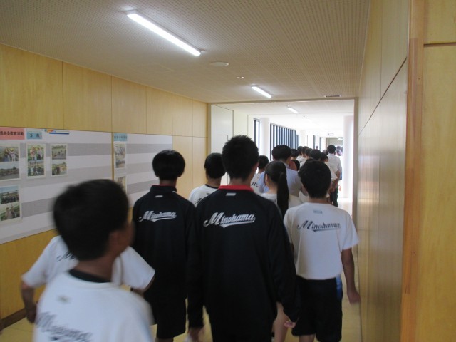 不審者を発見した場合の児童生徒及び教職員の初期対応、その後の対応など、いざという時に備えて緊張感をもって、真剣な表情で訓練に臨みました。