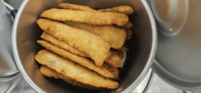 今日は今が旬の国産さんまをフライにしたものを提供しました。このところさんまは高級品で、給食ではなかなか出せませんでしたが、今年は比較的、安めのさんまを業者さんに紹介していただけたので、子供たちに食べてもらうことができました。さんまのフライ?と思う方もいるかもしれませんが、半身の切り身にパン粉を付けてフライにしてあります。食べやすくおいしくいただけました。他にも刺身、寿司、煮魚、塩焼きなど様々な食べ方があります。ぜひ、ご家庭でも旬の味覚を味わってください。給食では、さんまに驚いていた子もいて、おいしいと好評でした。小骨はよくかめば食べられるのですが、器用に手で抜いて食べていた子もいました。わずかについていた肝が苦いから嫌だという子もいました。