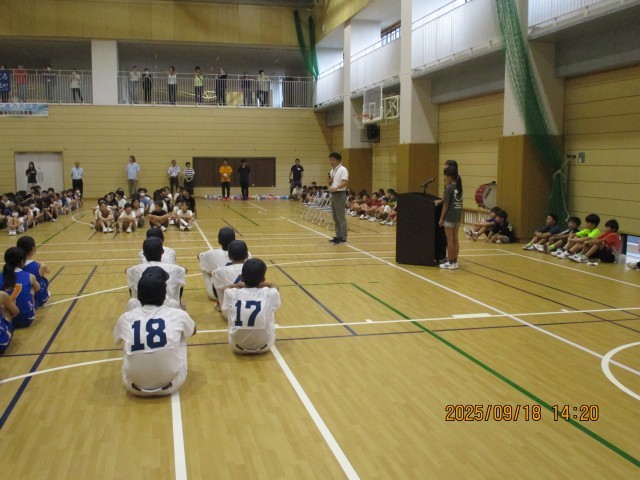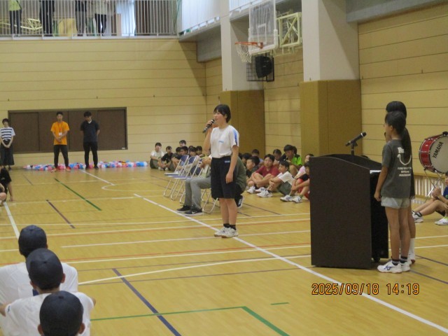 4~6年生が中心となって応援団を結成し、そこに9年生も交じって、選手たちに熱いエールを送ってくれました。