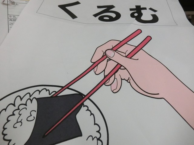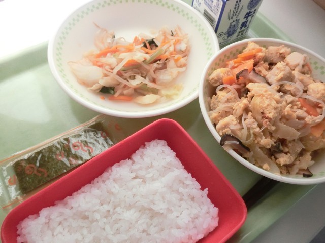 今日は市新人戦2日目ということで、後期課程の給食がなかったので寂しい感じでした。学校の「高野豆腐の玉子とじ煮」が好きなんだよね。やった「からしあえ」が食べたかったんだ。と給食を喜んでいる子が見られました。ごはんのお供に「味付けのり」を出し、1年生でおはしの使い方の勉強として、のりまきご飯の食べ方をお話しました。「難しい~」「やったことない」という子もいましたが、「見て~できた!」と笑顔で見せてくれて上手にできている子もたくさんいました。