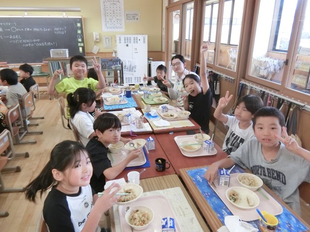 今日は来年度入学予定の児童が午後から就学時健康診断のため、早い時間の給食でした。業者さんにも食材を早めに納品していただき、調理員さんもいつもより約1時間早かったため、大忙しでした。ありがとうございました。給食の様子は「炒飯がおいしい!」「餃子は大好きだから最後にとっておくんだ」など笑顔で食べてくれていました。中には炒飯のしいたけや枝豆、なるとを避けて食べていた子もいました。給食後は「最高においしい給食でした」と満足そうに教えてくれた子もいました。「給食の炒飯はどうやって作っているのですか?」という質問がありました。今日の給食調理の様子を動画で撮影しましたので、ぜひご覧ください⇓。