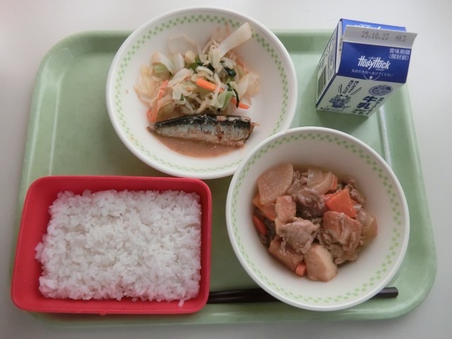 今日10月10日は「目の愛護デー」&「魚(とと)の日」です。数字の「1010」を横にすると「眉と目」に見えることから、目の健康を大切にしようと全国で啓発活動が行われる日です。目の健康によい栄養素の一つに「ビタミンA」があります。今日の給食では、ビタミンAが豊富な「いわし」を取り入れました。高圧で煮てあるので骨ごと食べられ、味噌・砂糖・ごま・生姜の甘めの味付けだったので、子供たちもおおむね食べやすかったようです。あるベテラン先生によると、今でこそ高価なさんまですが、昔は日常的にさんまやいわしでたんぱく源をとっていたそうです。七輪で焼いてしょうゆをかけて、ごはんのおかずにして食べていたと教えてくださいました。こういったお話を聞くと、私たちの食生活からの魚離れはあるかもしれません。みなさん、今日10月10日は「目の愛護デー」&「魚(とと)の日」です。夕食に目に良い魚を食べましょう!
