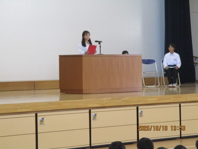 10/10金 前期終業式 成長できた前期!後期も「いろいろなことにチャレンジしてみよう」
