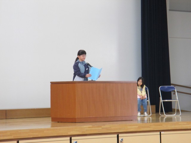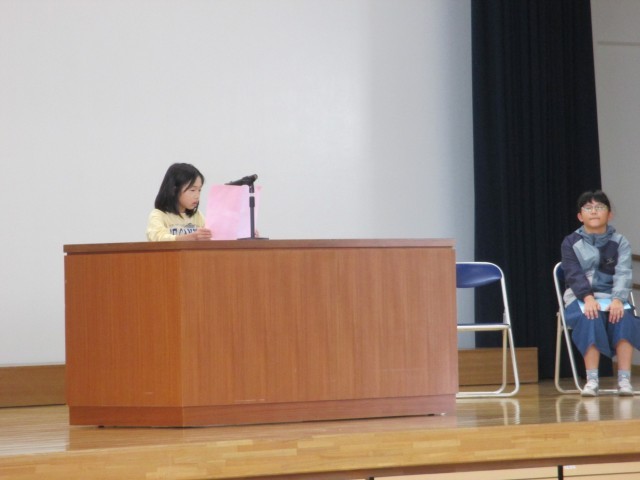 前期終業式に続いて、始業式では代表児童生徒2名の作文発表がありました。前期でできるようになったこと、そしてそれらを振り返って、後期で頑張りたいことを率直に話す2年生、そしてこれまでの読書活動について語り、読書の効果について改めて考えたことなどを話した5年生。二人とも堂々と話をすることができました。