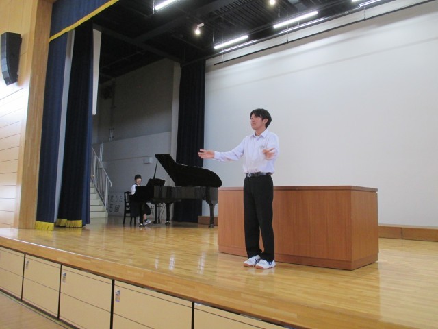 宮沢章二さんの「行為の意味」の詩を紹介しながら、周りの人を大切にし、支えてくれる人たちへの感謝の気持ちを忘れずに過ごしてほしい、と温かい言葉で呼びかけました。
