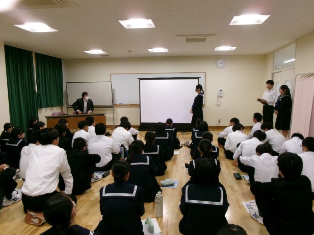 本日の5校時に、9年生を対象とした租税教室を実施しました。税のしくみや使いみちについてのご講話をいただき、暮らしを支える税についての理解を深めました。質疑応答では、「なぜ、増税する必要があるのか?」「税の種類は増やすべきか?」「これからできる節税の方法は?」などいった質問が挙がり、興味をもってお話を聴く様子が見られました。