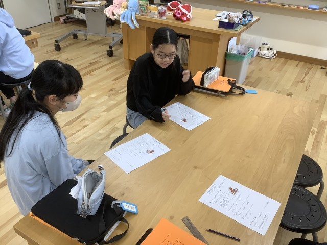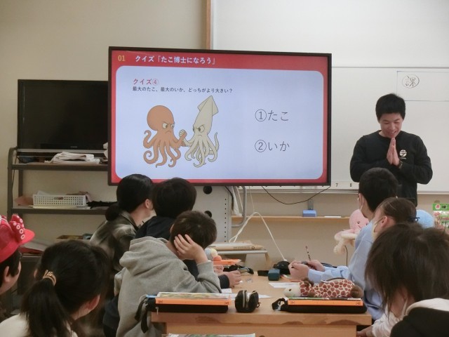 次に、たこにはどんな栄養があるのか、世界のたこ料理にはどのようなものがあるのか、など、様々な知識を蓄えられた児童たち。