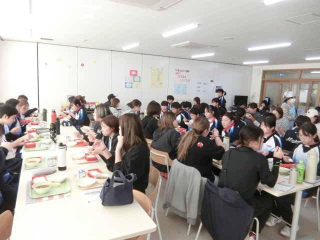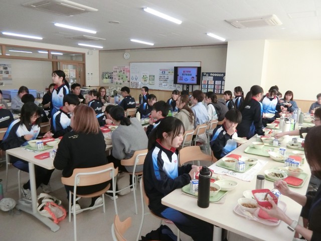 第7学年の親子給食が行われました。後期課程になって初めての親子給食ということで、少し恥じらう様子も見られましたが、親子で楽しくおいしく食べていました。誕生日の生徒がいたようで、生徒が自主的にバースデーソングを歌って盛り上げてくれていました。給食のカレーは子供たちの人気メニューで、親子給食でカレーの献立が当たることはあまりないので、保護者の中には喜んでいただいている方もいらっしゃいました。保護者の皆様、お忙しい中、ご参加いただき、ありがとうございました。いただいた感想の一部を紹介させていただきます。