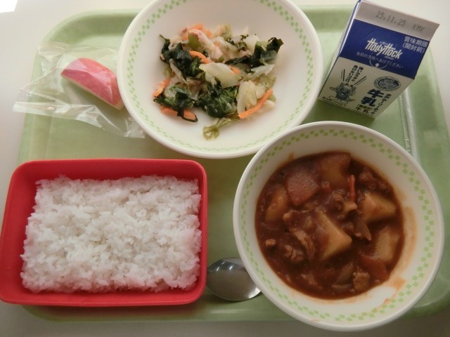 ポークカレーライス(ごはん ポークカレー) 牛乳 海藻サラダ りんご