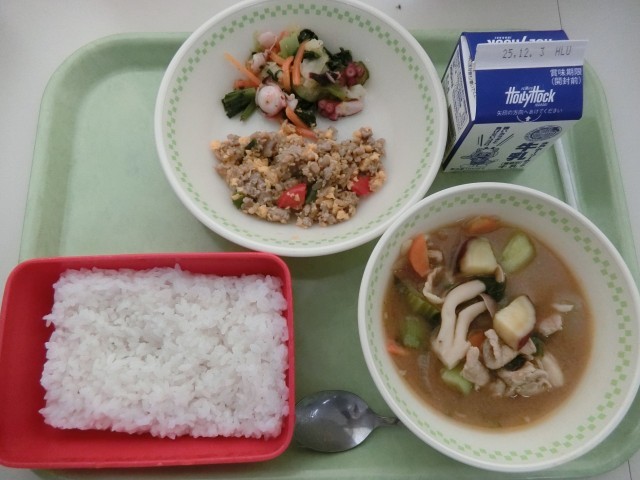 ごはん 牛乳 カミカミいばらきガパオ さくらだこのうめぇマスタードサラダ いばらき美味しおカレースープ