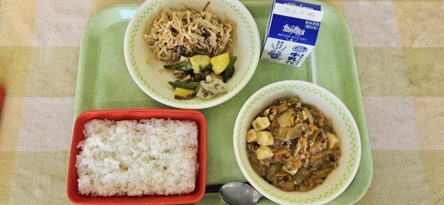 ごはん 牛乳 れんこん入りマーボー豆腐 台湾風塩味揚げ野菜 切干大根の炒め煮