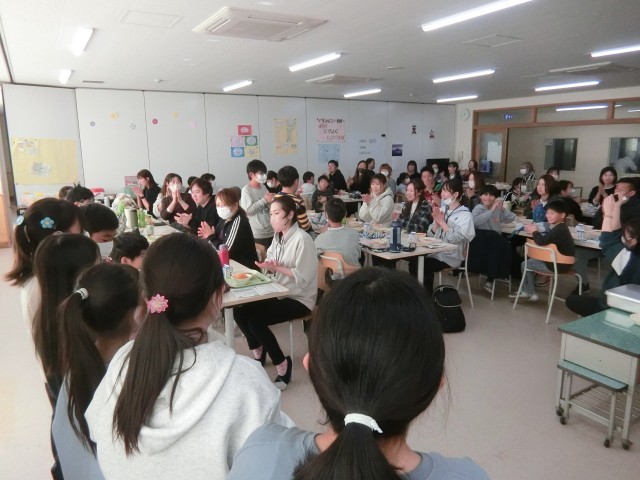 第4学年の親子給食が行われました。「おいしかった!」という声がたくさんあり、親子で楽しくおいしく食べられた様子でした。子供たちは(保護者の方も)スパゲッティのおかわりをたくさんしていました。おわんが小さいのでおかわりをしてちょうどよいくらいの量になっています。栄養教諭からは献立説明に加え、「カルシウム摂取について」「好き嫌いについて」お話させていただきました。保護者の皆様、お忙しい中、ご参加ありがとうございました。いただいたお声を一部ですが、掲載させていただきます。