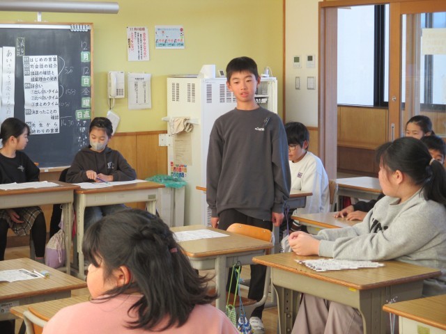 12/12(金)、4年生が学級会で「あいさつについて」を議題に、活発な話合いを行いました。