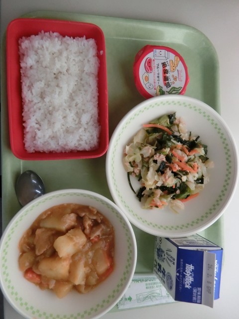 ごはん 牛乳 昔のカレー 海藻サラダ