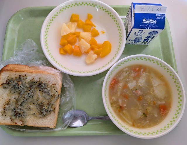 しらすのチーズトースト 牛乳 ポトフ フルーツポンチ