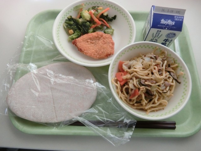 ピタパン 牛乳 チキンカツ ブロッコリーとコーンのサラダ 那珂湊焼きそば