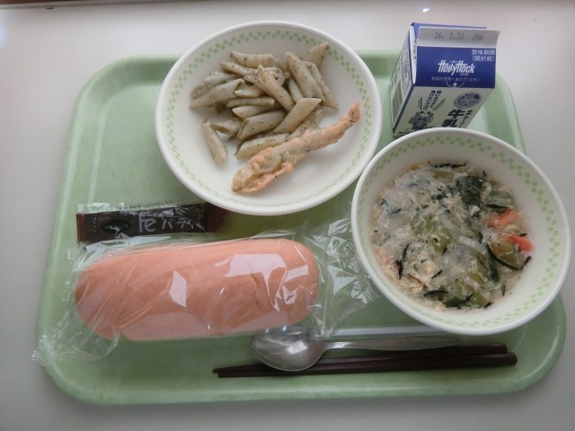 今日の給食もよく食べてくれていました。食缶が空で戻ってきたクラスもいくつかありました。給食委員会のある児童は「スープがおいしかった」「学校では家では出ないおいしいものが出るんだよな」と教えてくれました。おいしく食べてくれたようです。