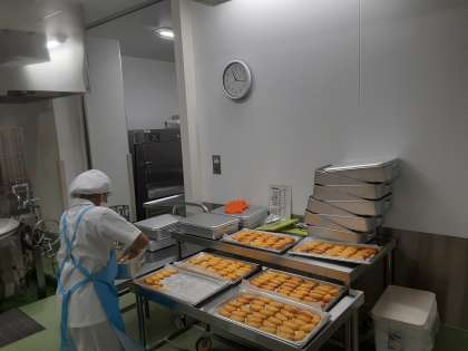 給食室で一部暗い箇所があり,先日,学校薬剤師の先生方に照度を調べていただきました。先週金曜日には,市役所の方々や業者さんに電気を追加施工していただきました。とても明るくなり,作業がしやすくなりました。ありがとうございました。