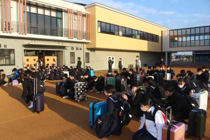 延期となっておりました修学旅行がいよいよ始まりました。朝早く6時30分の集合でしたが、みんな笑顔で出発式を行い、バスに乗り込みました。保護者の皆様にもお見送りいただきまして、ありがとうございました。ホームページでも修学旅行の様子をお届けしたいと思います。