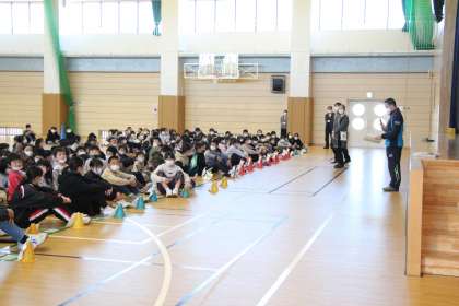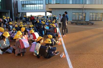 昼休みの時間に前期課程の児童で通学班集会を行いました。これまでの登下校の仕方を振り返り、約束などを再確認しました。下校の時には、写真のようにしっかりと並んで「さようなら」ができました。これからも安全に登下校できるようにしていきましょうね。