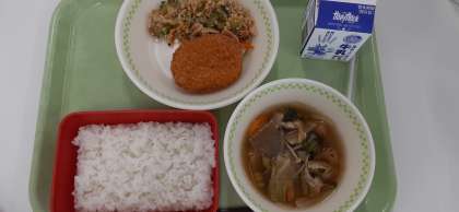今日の魚ハムカツは『魚肉ソーセージ』をフライにしたものでした。おいしかったのですが、意外にも残りがややありました。子供たちに理由を聞くと「胃がもたれるから」などと言っていました。職員室でも先生方も「昔は給食でハムカツが出たら大喜びだったのに、今どきの子は違うのかな?」と話していました。