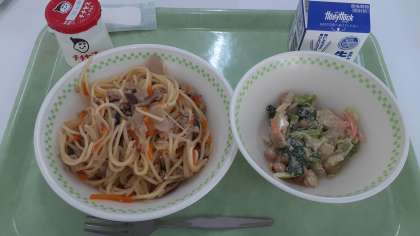ここ数日、真鯛に車エビと高級食材が登場しているので「今日は何だろう?」と楽しみにしている方もいたようでしたが、今日はありませんでした。「今日も給食おいしかった」「やったスパゲッティだ!」「ヨーグルトが甘くておいしかった」と子供たちが教えてくれました。サラダも野菜や豆が入っていたので、食べてくれるか心配でしたが好評でした。食べやすかったようです。作り方を掲載しておきますので、ご家庭でもお試しください。
