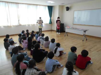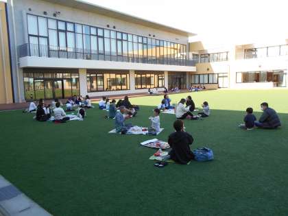 1年生の親子給食会を行いました。この日はお天気にも恵まれ、中庭でみんな仲よく給食をいただきます。保護者の皆様、久しぶりの給食のお味はいかがでしたでしょうか。きっと懐かしく、また、子供たちの給食の時の気持ちも感じることができたのではないでしょうか。また、親子給食会の後は、親子で歯磨き教室も併せて行いました。食事の後はきちんと歯磨きをしてですね、