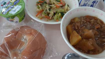 米パン 牛乳 根菜ブラウンシチュー ガーリックドレッシングサラダ ヨーグルト
