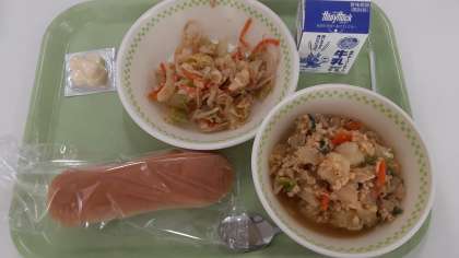 はちみつパン 牛乳 洋風たまごとじ煮 野菜とツナのごまドレッシングサラダ