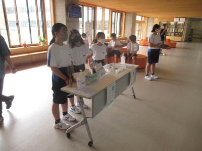 今日の朝も昇降口で福祉委員が回収を行いました。目標の回収枚数は4000枚です。