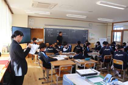 今週から8年1組に教育実習生が来ています。朝の会や授業参観を行い、少しずつ慣れてきたようです。本日は初めて理科の授業を行いました。生徒たちにもよい刺激となっています。来週も教育実習生とともによりよい学校生活をおくってほしいです。