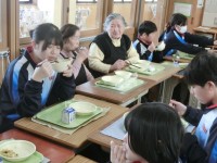 そしてもう一つ、今日の給食は「美味(おい)しお給食」でした。今日の献立の減塩ポイントは、ごまあえの「ごまの風味」、五目御飯の「食材のうまみ」、にこちゃんフライは「しょうがの風味」で控えた調味料の味を補う効果があることです。