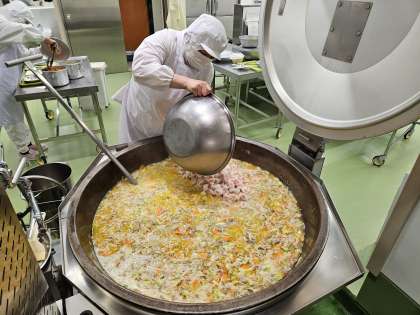 今日は昔から学校給食の定番とされている「ソフトめん」でした。ひたちなか市では年に2回提供しています。毎週や毎月提供している市町村もありますが、業者さんの数が減っている状況なので、頻繁には提供できないのが現状です。製造や管理に非常に手間がかかり、採算も合わないくらいだそうです。子供たちや学校給食のために、業者さんは作ってくださっています。今日も子供たち(先生方も)は「ソフトめんだ!」と大喜びで、食べられるのが当たり前ではなく、ありがたみを感じて食べています。「おいしかった」という子供たちの声がたくさんありました。めんを全部汁に入れてしまうとあふれてしまうので、低学年も少しずつ入れて上手に食べていました。