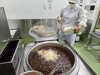 今日は子供たちのリクエスト給食で、特別に唐揚げを提供しました。子供たちのなかには、献立表を見て1週間前から楽しみにしていた子もいたようです。今日もそわそわしている子がたくさんいました。食べ残りもほとんどなく、喜んで食べてもらえたようです。調理員さんも作るのは大変ですが作り甲斐がある給食です。一方で、ごぼうのきんぴらは食べ残りが多かったです。「おいしかった」と喜んで食べてくれる子もいるのですが、苦手な子は多いです。今回は豚肉を入れて食べやすくしました。ごぼうを切ったり、焦げないように炒め煮したりと、手間がかかる料理ですが、子供たちに和食の伝統的な食文化を伝える意味でも提供しています。食経験を重ねて、少しでも食べられるようにしていきます。