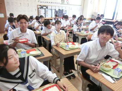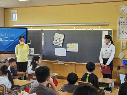 今日は茨城キリスト教大学 生活科学部 食物健康科学科の4年生2名が、9月に5日間行われる栄養教諭教育実習の1日観察実習を行いました。学級は3年1組と9年1組にそれぞれ配属となりました。お二人は昨年度に、管理栄養士の臨地実習に来た学生さんで今日は1年ぶりの再会でした。今日は子供たちや配属学級の実態把握のために、1日観察をしてもらいました。9月からの本実習に向けて頑張ってください。