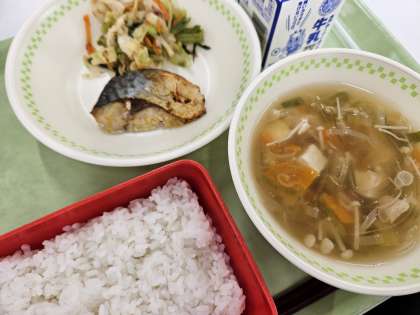 ごはん 牛乳 さばのカレー焼き おかかあえ くずきり入りすまし汁