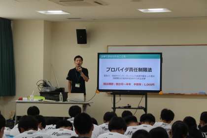 5校時に9年消費生活講演会を行いました。市の消費生活センター職員を講師に迎え、生徒がよりよい消費者として生活するための自覚をもつこと、消費に関するトラブルが発生した際の対処方法を知るきっかけとすることを目的として、昨年から実施しています。