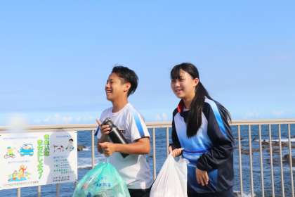 本日は、「地域の自然を大切にすることで、みんなで郷土に愛着をもちたい」という思いをもっていた9年生の井場さん、内田さんが企画をし、海岸清掃を行いました。地域や道中の清掃をするとともに、終わってからは磯遊びを楽しむこともできました。