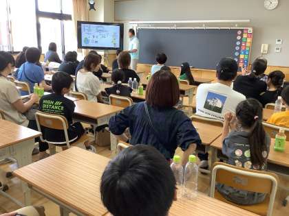 9月20日(金)3年生では親子学習会で「親子でサイエンスを楽しもう!」を開催しました。日本原子力発電株式会社東海事業本部のから講師の先生方を招き、親子でスライム作りやVR体験、原子力クイズの3つに挑戦しました。VR体験では、VR映像のジェットコースターに乗り、原子力発電所内を見学するなど、まるで本物に乗ったような気持ちなり、歓声をあげながら楽しんでいました。スライム作りでは、液体をペットボトルに入れて振ったり、わりばしで混ぜたりしながら、液体の様子が変化していくのを親子で楽しみました。原子力クイズでは、地球温暖化などの環境について、親子で考えながらクイズに答えました。どの体験も親子仲睦まじい様子で、とても微笑ましい学習会となりました。ご協力いただきました原子力発電所の皆様、また3学年委員をはじめとした保護者の皆様、ありがとうございました。