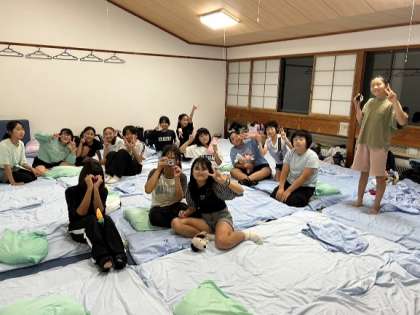 女子はみんなで協力してお布団を敷きました。普段ベッドで寝ているという児童は、珍しい体験になりそうです。男子の部屋は2段ベッドです。