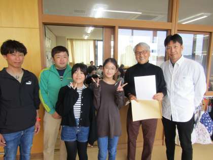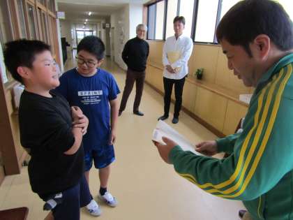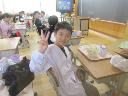 今日の給食時間には、事前に撮影した協力生産者の動画を流して、子供たちに見てもらいました。また、子供たちから、おやじの会・関係者様に手作りの感謝状を贈呈させていただきました。本当にありがとうございました。