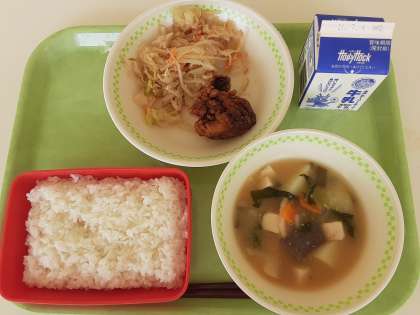 ごはん 牛乳 鶏肉の梅風味揚げ 実だくさん汁